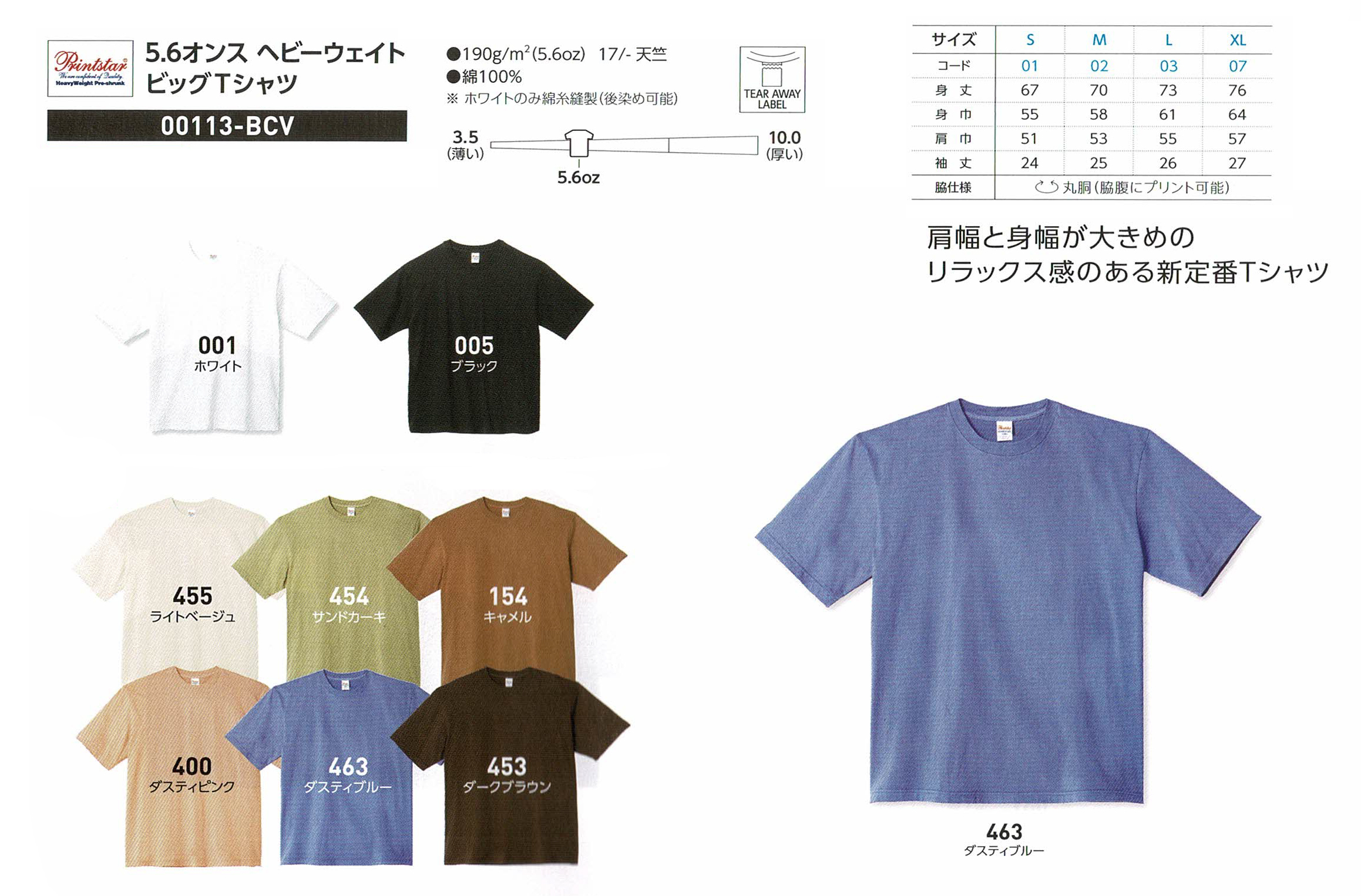 品番【Printstar 5.6oz 00113-BCV ヘビーウェイトビッグTシャツ】