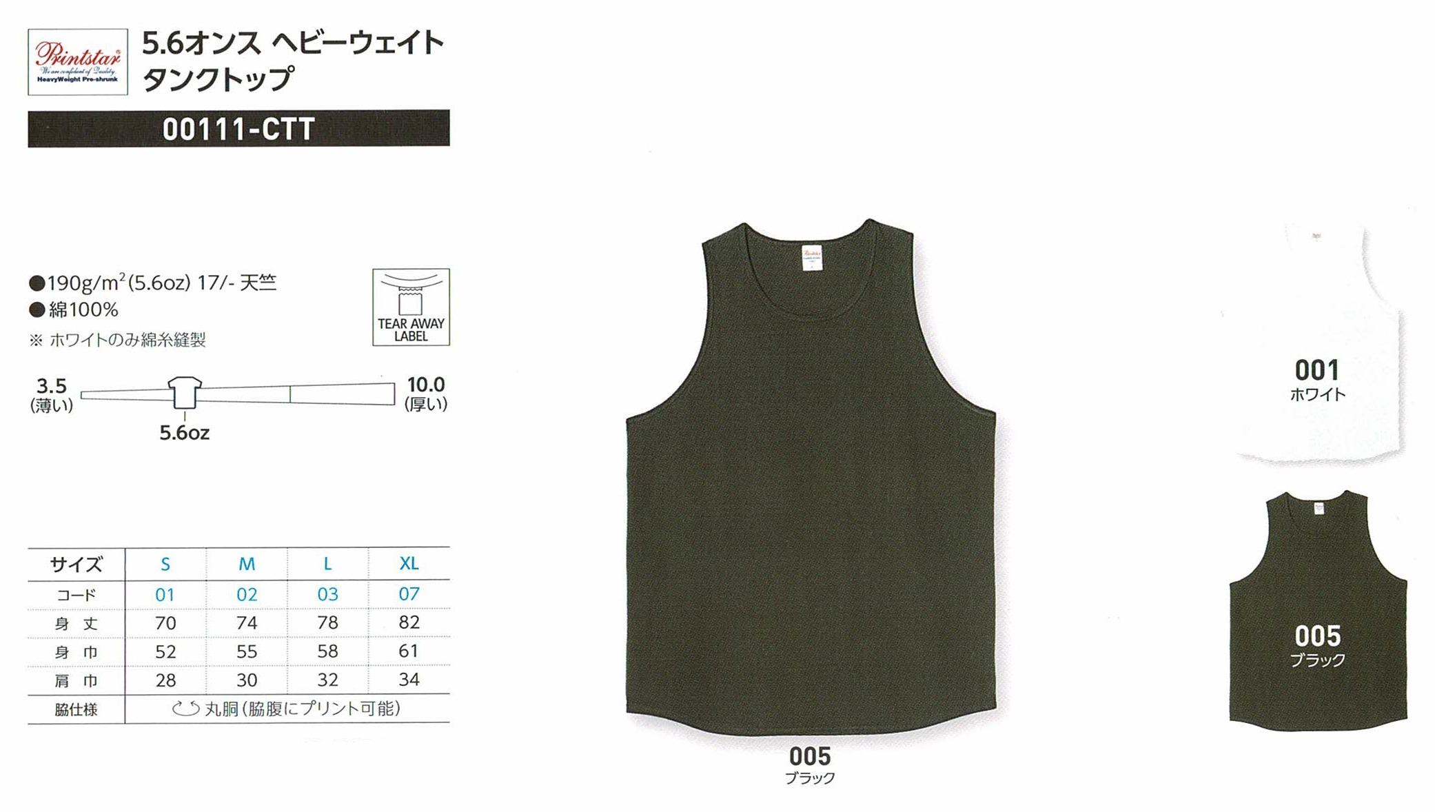 品番【Printstar 5.6oz 00111-CTT ヘビーウェイトタンクトップ】