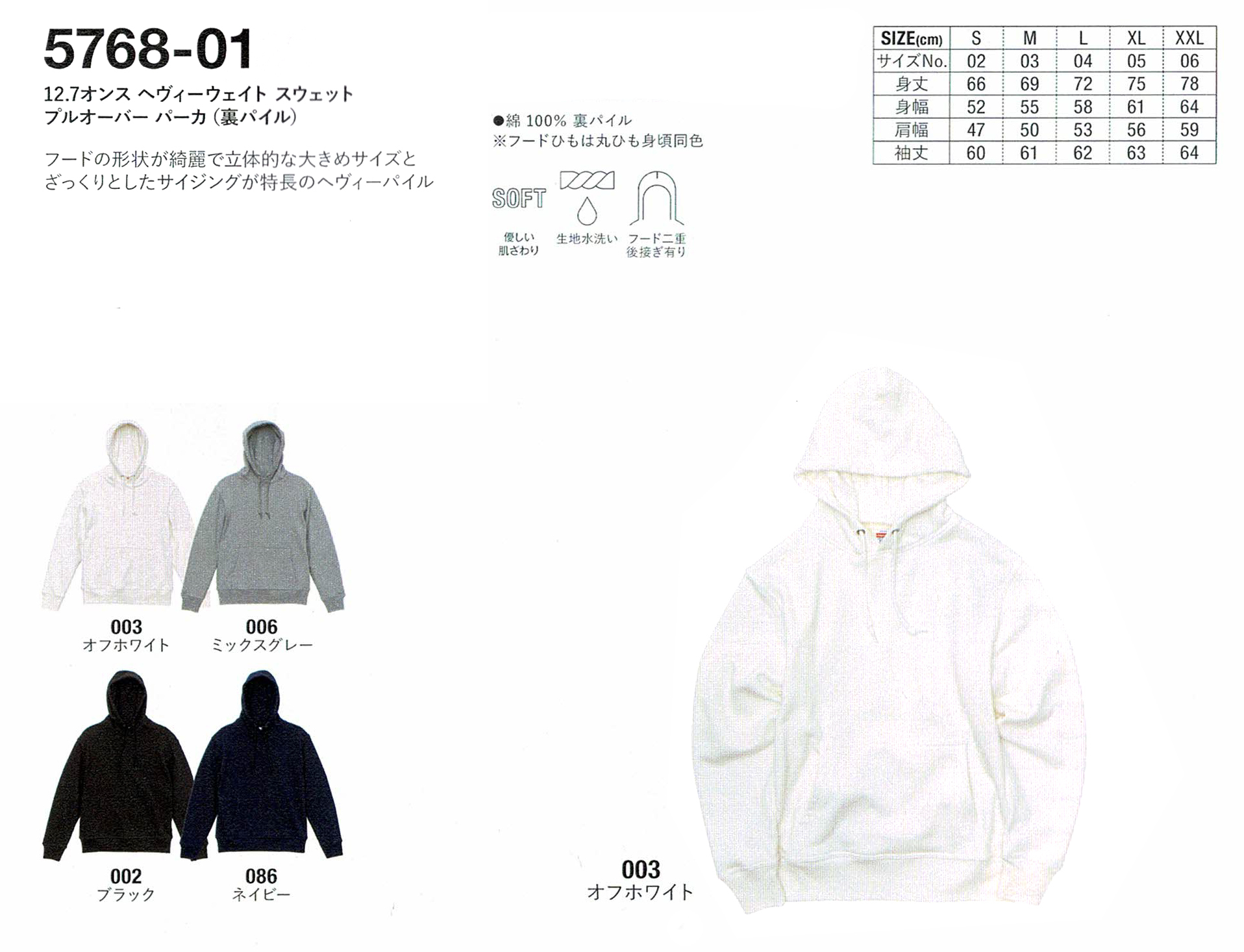 品番【5768-01 12.7オンス ヘヴィーウェイトプルオーバーパーカ(裏パイル)】
