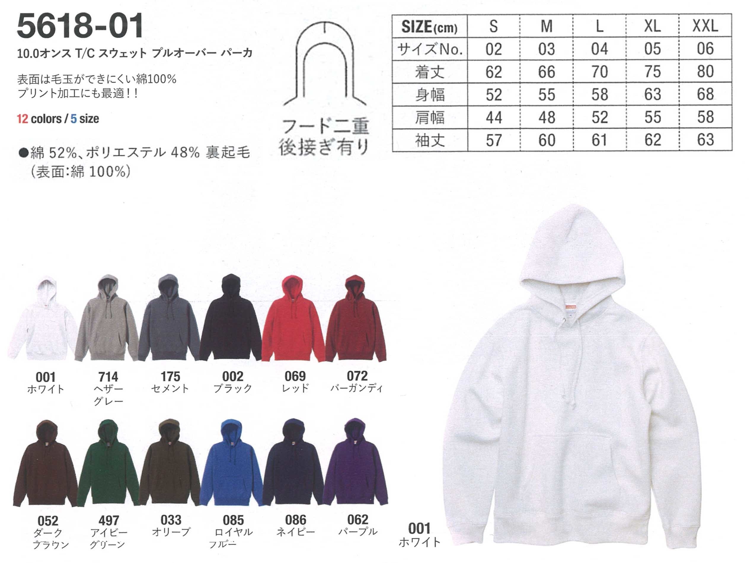 品番【UnitedAthle 5618-01 10オンス T/Cスウェットプルオーバーパーカー】